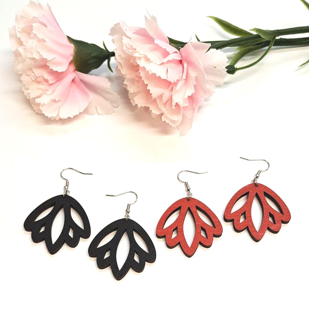 Puiset korvakorut on valmistettu 3 mm kotimaista koivuvanerista. Metalliosat on kirurginterästä. Korvakorut on käsitelty ympäristöystävällisellä maalilla tai puuvahalla. Puuosan koko on n. 4 x 4 cm.
